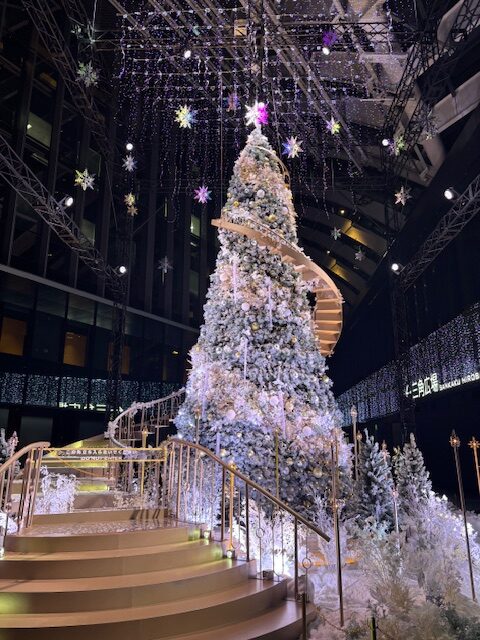 雪降るホワイトツリー「Snow flow」が開催されております。